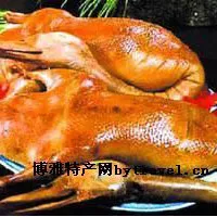江北熊鴨子產(chǎn)于重慶。 江北熊鴨子始于清宣統(tǒng)一年。當(dāng)年,重慶江北有個(gè)姓熊名漢江的小商販, 常在街頭巷尾出售熏鴨,他制作的鴨子色澤金黃,肉質(zhì)軟嫩,爽口化渣,很受食者歡迎。到四十年代,不少酒館、餐廳爭(zhēng)相找熊漢江訂貨。從此, 江北熊鴨子名噪一時(shí),生意興隆,商販仿制者眾。熊漢江為了維護(hù)自己 的信譽(yù),就用金紙剪成“熊漢江”三個(gè)大字,貼在玻璃柜內(nèi),因此,又 有“金字熊鴨”之稱。 這種鴨外形美觀,光亮呈橢圓形,表面為深棕色或茶色,皮脆肉嫩;切開后,內(nèi)肉淡紅,脂肪為淡黃色,層次分明;吃起來,清香爽口,回味濃郁,具有川味烤鴨的獨(dú)特風(fēng)味。 由重慶江北區(qū)食品公司熊鴨子廠生產(chǎn)。本品精選當(dāng)年養(yǎng)的健壯仔鴨為原料,宰后去凈雜毛,以數(shù)十味名貴中藥材專制的香料腌制,加撐造型,文火烘烤而成。食前再急蒸30分鐘。本品肉質(zhì)細(xì)嫩,色、香、味、型俱佳
