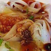 3、鐵鍋置火上,摻入清水燒開并保持微沸。取圓形鋁制平底燙鍋一只,先在鍋底抹少許色拉油,再舀入粉漿在鍋內(nèi)蕩平約3毫米厚,隨即將燙鍋微微傾斜,讓鐵鍋中的沸水流入燙鍋內(nèi)并從粉面流過,片刻,即將粉漿燙熟,之后連粉帶燙鍋一起放入清水中漂涼,即成片粉,依法逐一制完。用片粉可制成“梓潼片粉”等小吃。