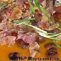 西充的臘肉火鍋,就是用以上種種臘肉,加上新鮮蔬菜和適量的肉湯配合而成。因此有葷有素,有菜有湯,既可配整桌筵席,又可單獨(dú)成席;既可飲酒當(dāng)菜,又可吃飯當(dāng)菜。在配整桌宴席上,有“四碗火鍋”、“七碗火鍋”和“九碗火鍋”。四碗火鍋,四菜是配菜,葷素各半,和火鍋一道上席,七碗火鍋和九碗火鍋,火鍋是和最后的四碗上席。單獨(dú)火鍋席,是地地道道的臘肉火鍋席,多是招待至親好友。火鍋分三層:上層是臘香腸、臘心舌等“盤子菜”;中層是臘肉,以半肥半瘦為佳,一般每人三塊,也有不分塊數(shù),截成“骨牌形”,要吃幾塊,各人自便。底層是新鮮蔬菜和活豆腐、血皮、粉皮等。三層均可兼吃,但一般是上層吃酒,中層和底層吃飯。無(wú)論是單獨(dú)火鍋、四碗火鍋、七碗火鍋還是九碗火鍋,吃到后來(lái),都是邊吃吃邊往火鍋內(nèi)添湯或把席上有的菜傾入火鍋內(nèi)煮,形成大雜燴,味尤鮮美。這時(shí)男女主人,也從廚房出來(lái)“勸飯”多謂:“有好客,沒(méi)有好酒好菜,飯請(qǐng)吃飽?!辟e主之情,此時(shí)達(dá)于高峰。這種風(fēng)情,至今在廣大城鄉(xiāng),多尤存在。