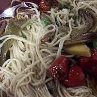 絲絲善魚面為坐橫面,其配料比例為5公斤優(yōu)質面粉加豬化油0.1公斤,雞蛋3個,精柔坐成板,切成銀絲面?zhèn)溆?。煮好的面條,加上蒜漿和膳魚飴即可上桌。