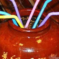 據(jù)說,“羌紅”即羌族的“哈達(dá)";“咂酒”是羌族地區(qū)最古老的一種釀造酒,是用青稞煮熟拌上酒曲,封入壇內(nèi),發(fā)酵7—8天后即可飲用。羌族飲咂酒,不用酒具,而是將酒壇開封,用一根細(xì)竹管咂吸,咂飲時(shí)以長(zhǎng)幼為序,輪流咂飲,并不斷地注入涼開水,直到味淡為止。是羌民族地區(qū)待客的最佳用酒。
