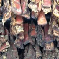 一:材料準(zhǔn)備:綠色糧食以及青草養(yǎng)出來的豬、松柏樹枝、食鹽、花椒、茴香、桂皮等輔料