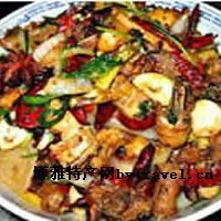 用生姜、蔥、干辣椒、花椒,胡椒烹制,成菜后風(fēng)味特濃,姜香悠長,微酸帶辣,味極鮮美,令嘗者齒頰留香。 原料 熟仔公雞肉 500克 老姜 30克 干紅辣椒 10克 化豬油 100克 花椒1克 醋 15克 醋 15克 醬油 15克 川鹽 2克 胡椒粉 1.5克 味精 1.5克 蔥花 25克 鮮湯 300克 濕淀粉 15克 烹制方法 1.將煮熟的仔公雞肉邊骨斬成約3.5厘米大的方塊,老姜洗凈去皮剁成細(xì)末,干紅辣椒去蒂、去籽,切成約1厘米長的節(jié)。 2.炒鍋置旺火上,下化豬油燒至七成熱,投入辣椒節(jié)、花椒、姜末煸香,下雞同爆炒,加入川鹽、醬油、鮮湯、胡椒,燒至粑而入味時(shí),下蔥花、味精,水豆粉勾芡,下醋推轉(zhuǎn)起鍋裝入盤內(nèi)即成。
