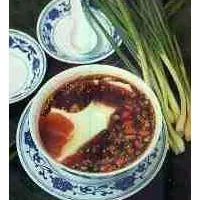 唐豆花,綿軟、細(xì)嫩、無渣,尤其是海椒水別具一格,路過香撲鼻,吃無清油味,油封豆花頂,醬油要吃盡(盤內(nèi)只剩紅油不剩醬油),顧客贊嘆不絕:”豆花吃不胖,要吃麻辣燙,調(diào)味實(shí)在好,十味質(zhì)量高?!笔队懈伤?、蝦松、日本味素、成都中興場(chǎng)窩子醬油、彭山長(zhǎng)春的杏仁豆瓣、漢源清溪花椒、芝麻醬、鮮蔥、芫荽、椿牙等。加上唐豆花古廟前大樹下,草堂茅舍,整齊清潔,林木掩映,環(huán)境幽靜,服務(wù)周到,和氣待客,且適合勞動(dòng)人民的消費(fèi)水平,所以經(jīng)常賓客盈門。