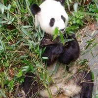 大熊貓屬食肉目大熊貓科,與熊類(lèi)是表兄弟。其體型似熊,頭大而圓,身體肥胖,尾巴極短。一般成年大熊貓?bào)w長(zhǎng)在120-180厘米,尾長(zhǎng)10-12厘米,肩高65-75厘米,胸圍87-89厘米,臀高64-65厘米,后足長(zhǎng)12-20厘米,耳長(zhǎng)72-115毫米,體重60-11公斤。軀干和尾白色,兩耳、眼周及四肢全黑,大熊貓因其渾圓的體型,憨態(tài)可掬的動(dòng)作,黑白相間的色彩博得世人的青睞和喜愛(ài)。 大熊貓主要棲息于海拔800-3000米的山區(qū)森林中,其喜愛(ài)在針葉林帶、針闊混交林帶以及落葉闊葉林帶的竹林內(nèi)活動(dòng),主要以竹莖、竹葉和竹筍為食。