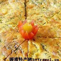 把這些材料全部混合均勻。鍋里下油,將混合好的蛋液倒入,小火煎。等上面的蛋液基本凝固了,翻一面繼續(xù)煎。