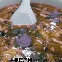 酸辣湯為家常湯菜。以肉絲、豆腐、冬筍等料經(jīng)清湯煮制而成。特點是酸、辣、咸、鮮、香。飯后飲用,有醒酒去膩,助消化的作用,深受歡迎,在全國廣為流傳。