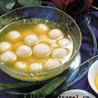 原 料: 糯米粉500克,熱水適量。 調(diào) 料: 雞肉100克,熟花生粉、熟芝麻、雞湯、鹽、味精等適量。 制作方法: 煮。把雞肉剁成沫加入食鹽、味精調(diào)勻成餡。糯米粉用熱水和勻揉成光滑的面團(tuán),揉條、下劑,包入餡心,用開(kāi)水煮熟后撈入碗內(nèi),加入雞湯、熟花生粉、芝麻粉即成。 風(fēng)味特色: 湯圓軟糯,餡心鮮香,湯汁營(yíng)養(yǎng),為興義地區(qū)名小吃。 技術(shù)要領(lǐng): 面團(tuán)加水要適當(dāng),煮湯圓的水要寬。
