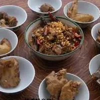 雞八塊也叫馬料豆雞。馬料豆也叫秣食豆,飼用大豆,是栽培大豆的原始類型。馬料豆之名,原于“送灶神”的習(xí)俗。相傳灶神司人家衣食溫飽,每到臘月二十五日將民間善惡上達天庭。于是民間有于二十四夜以紙、竹扎成橋、車馬,于門前焚燒、殺雞“送灶神”。為能粘住灶神之口,不方過失,免生是非,就以豆沙餡糯米團子“送灶團”和麥芽糖等制成的粘牙糖食“糖元寶”等供祀灶神,也用酒糟涂抹灶門,謂之“醉司命”。亦有以米粉捏成缸壇,雞窠等形祀社,以糖粘灶門。同時,還將稻草切成寸許長與黃豆撒向空中,作為灶神坐騎“神駒”的飼料,稱之“馬料豆”。在這次活動中,為了1獎賞,吃雞肉住持將分成幾份,以年齡大小和做事多小分配,演變而成。據(jù)說在天地初開時,造物主在正月一日造作了雞,七日造作了人。董勛《問禮俗》日:“正月一日為雞,……七日為人”?!吨芤拙曂ㄘ则灐吩疲骸半u,陽鳥也,以為人候?!薄半u”是人類開始活動的象征,它象征著新的一天,新的時間的開始,它結(jié)束了混沌未分的黑夜,迎來了黎明的曙光。格凸人,從整雞到砍雞,待客都有自的講究。殺雞待客,在最原始的紫云人的理念里是不是與這些有關(guān),現(xiàn)在看來已經(jīng)無法考究了。但在紫云人的理念里無雞,即使有山珍海味便不成敬意。對于雞八塊的分發(fā),苗族和布依族是不同的。其余煮雞食之,謂之明目亮眼,補虛強體。