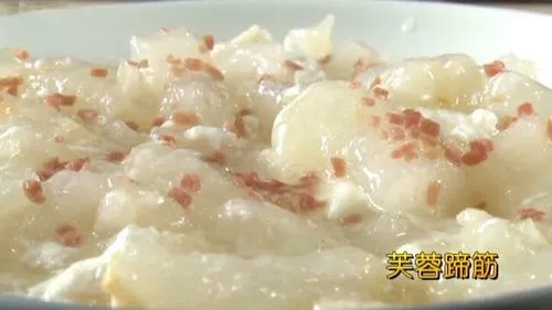 芙蓉蹄筋 貴州 ? 畢節(jié) ? 黔西 芙蓉蹄筋 芙蓉蹄筋咸、鮮味并存,屬餐桌之上品,在本地區(qū)較為流行。 配方:主料—油發(fā)蹄筋250克,雞蛋清3個(gè),雞脯肉200克。輔料—胡椒0.2克,精鹽5克,雞精0.5克。 制作工藝:將雞脯剁成雞糝 ,放入雞湯解散,放入蹄筋,加鹽、雞精、胡椒,凈鍋上火,下入色拉油至三成熟時(shí),下入攪拌好的雞糝蹄筋炒制變色即成。 贊 (0) 39 151 生成海報(bào) 麻花炒羔蟹 下一篇 0001-01-01 百花釀雪魚 上一篇 0001-01-01 相關(guān)推薦