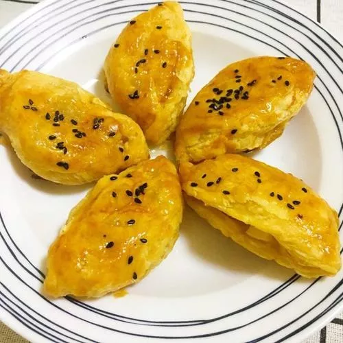 技術(shù)要領(lǐng):烤的爐溫過高不起酥層;爐溫過低容易漏餡,開成暗酥
