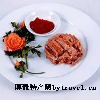 聯(lián)山灣腌酸肉不僅是荔波地方名菜之一,而且具有獨(dú)特的飲食文化魅力。腌酸肉的制作工藝十分講究,它運(yùn)用了化學(xué)反應(yīng)的科學(xué)原理,充分體現(xiàn)了古代布依族人的聰明與智慧。制作基本流程是:第一步,準(zhǔn)備一個(gè)小壇子、肉類、小米(或大米)、鹽、姜、花椒即可;第二步,先將肉切成薄片,放適量鹽、姜、花椒摻和攪勻;第三步,按每斤肉2?3兩小米(或大米)的比例將小米(或大米)用水浸泡,再用鍋炒干炒熟;第四步,將壇子洗凈,把幾顆燒旺的炭火放進(jìn)壇里烘干,片刻后取出,迅速將拌好的肉放入壇中,壓緊,將蓋蓋上,加上壇盤水。三個(gè)星期左右,原先放進(jìn)壇子里的生肉自然腌制成了熟肉,將其打開(kāi),直接食用。腌酸肉的顏色保鮮度非常好,象剛宰殺的新鮮肉一樣,色鮮味正,酸爽可口。腌酸肉的肥肉呈乳白色,瘦肉呈暗紅色。從壇子取出便可食,若在上面灑一些干辣粉,其味更佳。聯(lián)山灣腌酸肉的品種有腌酸豬肉、腌酸牛肉、腌酸雞肉等