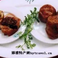 制作過程: 將大米、黃豆洗凈用清水浸泡5小時,發(fā)脹后加入米飯磨成漿;把豬肉剁成末,加姜末、蔥花、鹽、味精拌勻制成肉餡;凈鍋上火放油,燒至油溫六成,把高4厘米、直徑4厘米的專用6邊形鐵制模具放入油鍋中浸燙至熱,將米漿舀入模具,占內(nèi)空的一半,放肉餡,再舀漿蓋在肉餡上炸2分鐘定型后,從模具內(nèi)倒入鍋中繼續(xù)炸至金黃、酥脆即成。用醬油、紅油、折耳根粒、姜末、蔥花,加鹽混合拌勻放入炸糕中佐食。(因形似雞蛋糕,當(dāng)?shù)厮追Q“紅油雞蛋糕”)。