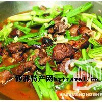狗肉湯鍋,因歷史上逢場(chǎng)天場(chǎng)上以三塊石頭支鍋,賣碗碗狗肉而得名。實(shí)為清燉狗肉。其泡制方法是將狗敲死(用棍猛擊狗頭)再放血,然后用稻草將其包裹,點(diǎn)燃褪毛,待狗皮被烤得黃央央并略開小裂時(shí),再開膛破肚,洗凈剁成小塊。清燉時(shí),將狗肉與生水同時(shí)放入鍋中,等水將開未開時(shí),舀出一盒作“原湯”,然后添水并將川芎、八角、山萘、桂皮等香料放入,之后,每添一次生水,需摻一瓢原湯,籍以保持原味。到時(shí)候蘸以辣椒、鹽荽、食鹽(不用醬油)、酸醋等伴和蘸水而食。其湯清香撲鼻,肉爽口不膩。當(dāng)?shù)赜小俺粤斯犯?,不要被單;吃了狗肺,不要棉絮”得諺語(yǔ),蓋狗肉有驅(qū)風(fēng)祛濕,滋陰補(bǔ)腎之功能。另有名吃“黃瓜脆”者,即狗肉熟而不粑,入口嚼之尚嚓嚓有聲,如嚼黃瓜。但此種吃法,以年輕或齒健者為宜。