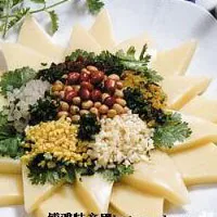 涼拌食用:一般將其切成拇指大小的小正方形,放入碗中,添加事先作好的湯(番茄湯味更佳),輔料,食醋.就OK了...