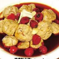 泉口灰豆腐采用德江北部農(nóng)農(nóng)自種的黃豆為原料,以顆粒齊整、無雜質(zhì)、無蟲眼、無發(fā)霉變質(zhì)為好。制作工序主要包括:泡料(將黃豆加溫水(300C左右)浸泡)、磨料磨料(使用石磨)、過濾(使用濾網(wǎng),俗稱豆腐包)、煮漿(用敞口大鍋)、加細用加細網(wǎng)再次過濾、凝固(下鹵,控制溫度和濃度)、成型(榨出漿水)、分塊(切成小塊)、炒制(用糯谷草灰或豆桿灰,控制溫度和力度)、包裝。灰豆腐主要用于湯羹、火鍋(燉制好主料后,加入灰豆腐微火燉制3—5分鐘即可),香嫩甜滑,口感純正,令人回味無窮。