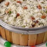 據(jù)《銅仁府志》記載,社飯源于社日祭祀。主要流傳于銅仁市,當?shù)仫L俗,長輩逝世后頭3年在清明前要到墳上去祭祀,稱之為“掛社”。銅仁人一般利用星期天,邀集親朋好友到墳上去祭祀,然后吃社飯。后來由于社飯好吃,就不管有無“掛社”都做社飯吃 社飯的主要原料是青蒿、糯米、大米、野蔥和臘肉。制作過程是:青嵩洗凈后切碎,擠出苦水后炒干備用;野蔥切碎;臘肉煮熟切成顆粒;糯米浸泡5—8小時后濾干;大米在鍋里蒸熟。放時要一層一層地放,放滿后可用煮臘肉湯澆少許在面上,這樣蒸熟的這飯,香味噴鼻,粘糯適中,酥而爽口。有補中益,除瘴去毒,強益膽氣等功效,深受人們喜。近年,人們又以社飯中加進了花生仁、核桃仁之類,更增強了社飯的滋補功能。( 銅仁)