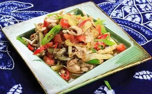 肉炒芭蕉花 云南 ? 西雙版納州 ? 景洪 以一內(nèi)芭蕉花和100克新鮮狗肉為原料(若無(wú)新鮮狗肉,可用豬肉代替)。烹飪時(shí),取下芭蕉花的花瓣,洗凈切細(xì),放少許食鹽漬制片刻生,淘洗擠捏,去除澀味。狗肉切成薄片或剁細(xì)(豬肉亦然),先將肉在油鍋內(nèi)爆炒至八成熟,再加入芭蕉花與適量食鹽、味精炒熟即可。這道菜,從前多在賀新房時(shí)食用,因風(fēng)味獨(dú)特,餐館內(nèi)已普遍用以待客。( 西雙版納) 贊 (0) 39 151 生成海報(bào) 暴腌芭蕉心 下一篇 0001-01-01 傣味燒烤 上一篇 0001-01-01 相關(guān)推薦