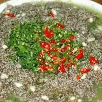 酸螞蟻蛋 云南 ? 西雙版納州 ? 勐臘 每年三、四月是掏酸螞蟻蛋的好季節(jié)。將掏出的酸螞蟻蛋清除成形螞蟻和其他雜質(zhì)后洗凈。先用豬油把辣椒、大蒜、鹽巴等配料炒黃后加水,待水燒開,倒入酸螞蟻,煮上20分鐘,盛入碗中,即可就餐。其味道鮮辣可口,并有特殊的酸甜味,含有豐富的蛋白質(zhì),是基諾人喜愛的佳肴。( 西雙版納) 贊 (0) 39 151 生成海報 蟹肉圓子 下一篇 0001-01-01 辣咪 上一篇 0001-01-01 相關推薦