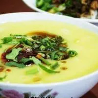 騰沖稀豆粉的吃法也有大講究,一碗稀豆粉要分三部分,一部分不拌佐料、一部分輕拌佐料、一部分伴和佐料,將這三部分變幻順序輪著吃,不同的輪吃有不同的美味,妙極!
