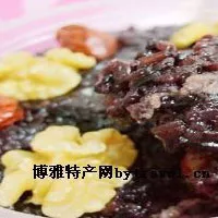 紫米也稱“紫糯米”、“接骨糯”。僅產(chǎn)于云南思茅和西雙版納地區(qū)。因顆粒長(zhǎng)、色紫紅,做成飯粥后色更鮮艷,故名。民間喜在年節(jié)喜慶時(shí)做成八寶飯食用。味香微甜,粘而不膩,補(bǔ)血益氣,暖脾胃,適應(yīng)于胃寒痛,消渴,夜多小便等癥,以之配草藥可治跌打刀傷。 紫米有特殊芳香,色紫紅,制成八寶飯后軟糯適口,油而不膩,加上各種調(diào)輔料形成難得的復(fù)合美味。 八寶飯可當(dāng)民間小吃,也可作為甜菜設(shè)計(jì)在各式筵席中。