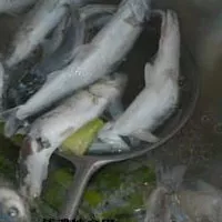 水入鍋,將活蹦亂跳的抗浪魚放入鍋內(nèi),蓋上鍋蓋。隨著水溫上升,魚兒頻頻