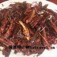 云南十八怪中,有一怪是“螞蚱當(dāng)下酒菜”。這螞蚱,就是我們常說的蝗蟲,就是這樣普通得不能再普通的蟲子,這里的人美其名曰:“跳菜”。在舊中國(guó),有一年北方地區(qū)蝗災(zāi),蝗蟲飛過,遮天蔽日。所到之處,草葉、樹葉都被一掃而光,可見蝗蟲的厲害。而在云南滇西北一帶,一到秋季收割谷子的時(shí)候,那谷田里便到處是螞蚱飛舞的影子。從田埂上走過,一陣“堤嗒”聲,走急了都會(huì)踩死幾只螞蚱。這時(shí)候,婦女們便一面割谷子,一面將螞蚱捉了往圍腰里塞。當(dāng)然也有專門捉的,用了網(wǎng)兜綁一竹棍,在田埂上跑來跑去地捉,不用多少功夫就能捉滿一大塑料袋。 這些割谷子的婦女,將捉了的螞蚱帶回家,用開水一燙,去掉翅膀,和腿足,在鍋里慢慢烤黃,烤到水分干涸,焦黃燦然的時(shí)候,加上香油,花椒調(diào)料,黃生生的螞蚱,便透出誘人的香氣。那香勁才叫無(wú)法形容,清脆中有一股子谷草的清香氣味?;蛘邔⑽涷婆D干了,“有朋自遠(yuǎn)方來”的時(shí)候,炒上一盤,弄上二兩小酒,款待朋友。