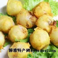 石屏荔枝酥是云南省石屏縣民間制作的名特食品。其外觀小巧玲瓏,形狀、色澤頗似荔枝故得名。 石屏荔枝酥的原料主要是一級面粉、白糖、豬油、玫瑰、芝麻、桔皮、糖粉、香櫞絲,按一定配比精制而成。首先是把面、油、冷開水按20:5:7的比例合成面團(tuán),把面、油按2:1的比例合成酥;再把面團(tuán)和酥制成皮子,把白糖、豬油、玫瑰、芝麻、桔皮、糖粉、香櫞絲組合為餡心;然后,皮子包酥,切成小塊,包入餡心,做成荔枝狀;最后把它放進(jìn)滾燙的油鍋里炸至金黃色即可。石屏荔枝酥每個(gè)不足10克,外型美觀,小巧玲瓏,食之酥松,香甜適口。( 紅河)
