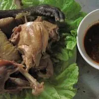 雞快砍剁好后,將鍋置于烈火上,倒入純正的植物油,放上一把未切開的成完整包狀的干辣椒,以及鹽巴,然后將砍剁好的雞塊放入,再加上草果、生姜等佐料一起爆炒,直至水分炒凈,才摻入甘甜純凈的山泉水沸煮。煮到一定時間,放上少許味精,即刻打撈出來食用。食用時,湯、肉分明,雞湯單獨喝,雞肉打蘸水。其味道噴香鮮美湯肉不膩,食后不燥火,營養(yǎng)豐富,滋補健身,因而備受四面八方的食客的青睞。