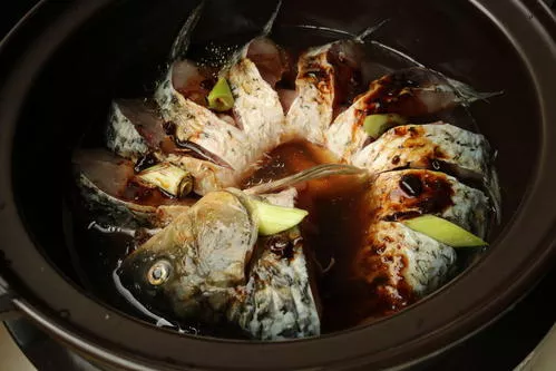 白族吃魚味在“鮮”。聞名全省的“下關砂鍋魚”,就是用洱海中捕來的弓魚或鯉魚作主要原料,配以幾十種輔料,在祥云縣特產的砂鍋中烹制而成的白族風味名菜。烹制砂鍋魚,講究鮮活。下關市經營砂鍋魚的飯店,都在店堂中設置一口石水缸,放養(yǎng)活魚,由顧客挑選后再行加工制作。烹制地將活魚去鱗、剖腹、洗凈,用毛巾擦去水分,于腹壁上擦抹精鹽,腌十多分鐘,即放入盛上湯的砂鍋中烹煮,接著先后放入發(fā)好的魷魚片、海參、蹄筋、蝦米、冬菇、玉蘭片、嫩雞片、火腿片、鮮豆腐片、白菜心、紅胡蘿卜等輔料和調味品,連鍋端上桌,由于配料多樣,砂鍋保溫性能良好,鍋內魚湯翻滾,鮮香撲鼻,引人食欲。此時趁熱食用,湯鮮肉嫩,味美可口,營養(yǎng)豐富,色、香、味俱佳。