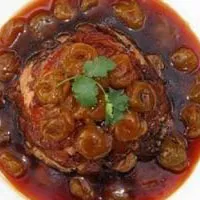4.將剩馀鹵汁過濾乾凈,下鍋、再加入梅子碎、勾薄芡淋上作法4即可。
