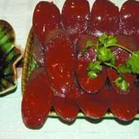 “血腸”是彝族先民們創(chuàng)造并傳承下來(lái)的一道美味佳肴。動(dòng)物的血液被彝族先民奉為是上天賜予我們的最盛潔的禮物和最鮮美營(yíng)養(yǎng)的食物。由于山路難行,阻礙了彝族群眾生產(chǎn)生活用品之間的流通,因此居住在彝族村寨彝族同胞每年都會(huì)宰殺一頭或兩頭肥豬,俗稱“殺年豬”。每到這一時(shí)間段就能吃上一碟噴香的血腸。制作“血腸”的方法很簡(jiǎn)單,首先要確定“殺年豬”的時(shí)間,然后準(zhǔn)備好糯米、茴香粉等主配料。在“殺年豬”的頭一天夜晚用清水將糯米浸泡至半軟(如果選用豆腐則無(wú)需此料和此道工具),第二天,將糯米撈出拌上茴香粉等配料,待取出豬血后,以血和之,洗凈豬大腸,再將糯米、豬血放入大腸內(nèi),用棉繩扎緊大腸兩端,放入鍋中用水煮熟,既成。