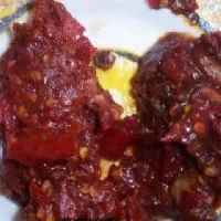 糊辣講究的是糊,將干透的辣椒遠火慢烤,烤得糊過心后,揉碎與溫開水、鹽巴、味精、蒜泥、蔥米、花椒油等調制成蘸水,蘸食排骨、肉片特別是素味小菜,以不摻雜質的清香純辣取勝。油辣是用烈油炸干辣粉而成,制作中最講究的是火候,火太虛炸出來的油辣色紅味嗆,火太猛炸出來的則又色糊味焦,皆不可取。只有火色適中炸出來的才色澤金黃香味撲鼻。辣豆豉是由豆腐渣發(fā)霉后拌干辣粉制成的餅干形小塊,晾干后用菜油煎食,油香、豆香、辣香,再加上焦脆的口感,食之使人滿口生津。尤其東部山區(qū)彝家人,燒酒下辣豆豉,吃得熱氣騰騰嚴冬無寒。