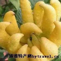 永平佛手柑又名“九爪木”、“佛手柑”,為枸櫞的變種。李時珍《本草綱目》云:“枸櫞產(chǎn)閩、廣間……其實狀如人手,有指,俗呼為佛手柑。”佛手四季長青,葉色濃綠,其花可入茶,味似茉莉。果形奇特如拳似指,妙趣橫生且幽香撲鼻。佛手為花、果俱佳的花木。果實又可入藥。 佛手除上述實用價值外,還與其名稱相關(guān),首先,以佛手喻佛。明朱多火正《佛手柑》詩云:“春雨空花散,秋霜碩果低。牽枝出纖素,隔葉卷柔荑。指豎禪師悟,拳開法嗣迷。疑將灑甘露,似欲攬伽梨。色現(xiàn)黃金界,香分白麝臍。愿從靈運后,接引證菩提?!痹娭兴伔鹗纸耘c佛事相聯(lián)系。后世吉祥圖案“學(xué)仙學(xué)佛”亦為圖繪水仙和佛手柑的紋圖,也是以佛手柑代指佛。其次,佛手的“佛”讀音與“福”相近,諧音取意,為祈福納吉的吉祥物。吉祥圖案“三多”,意為多福、多壽、多子,圖繪佛手、壽桃、石榴的紋圖,也是以佛手代指福,多應(yīng)用于畫稿、衣料、家具、什器,亦常用于祝壽。