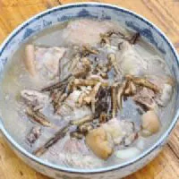 鮮豬腳燉煮雞足山白草烏,是賓川民間流傳久遠(yuǎn)的土特藥用保健風(fēng)味食品。草烏有黃、黑、白幾種,多產(chǎn)于海拔2500米以上的山地里。有紡錘形之肉質(zhì)根系,最大者僅有小指粗細(xì)。屬于較為劇毒之藥材。但若使用得當(dāng),且是溫經(jīng)通絡(luò)、祛風(fēng)除濕、散寒止痛的藥用佳品。在佛教旅游勝地雞足山,由于具有獨(dú)特的氣候水土和優(yōu)越的自然條件。出產(chǎn)的雞足山草烏特別是白草烏等其藥用功效,與它處所出產(chǎn)之相比,更具有其獨(dú)道之處。但因草烏有毒性,燉煮時(shí),要求極其嚴(yán)格。需要謹(jǐn)慎細(xì)心操作,防止中毒。