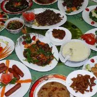 為游客提供的素食主要有素火腿、素雞爪、素腸、佛珠雞、素蒸雞蛋、素千張等。這些素食十分講究做工和火候。這些食品雖然全都以面食為主料制作而成,但從外觀上,根本分辨不出它與傳統(tǒng)葷食有絲毫差別。素雞爪外觀紋理、形狀、色澤與葷食雞爪毫無差別;白參蒸雞蛋在碗里,蛋黃金黃剔透,溫潤細膩,蛋清嫩白潤滑,加之周圍全都是素凈的白參,活脫脫就是一輪金黃的太陽在白云的襯托下,顯得美輪美奐,妙不可言;素千張每一片都具備肥瘦相間,紋理清晰,肥肉呈褐色,瘦肉呈淡紫色??粗@些惟妙惟肖、巧奪天工、神形兼?zhèn)?,色香味俱全的素食,加之雞足山特有的各種野菜加以點綴,真讓人垂涎欲滴。