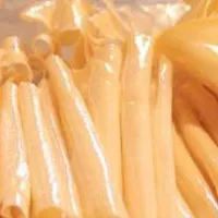 “鄧川弓魚(yú)美,洱源乳扇香”,從這句云南民間俗話里,可知乳扇是多么美好的食品。 奶制品乳扇,是白族人民的風(fēng)味佳饌,素以洱源所產(chǎn)最為地道。洱源水草豐腴,盛產(chǎn)乳牛,早在清代初期,白族人民族掌握了用鮮牛奶制作乳扇的技藝。乳扇是一種用純鮮牛奶制成的奶制品。色黃白,形如扇、色鮮味美,營(yíng)養(yǎng)豐富,質(zhì)地厚實(shí)柔嫩,手摸到它,立刻就有一層奶油附在手指上。用這種乳扇烹制出來(lái)的熟品,顏色鮮黃帶紅,奶香四溢,催人食欲。乳扇吃法,多種多樣。有油煎撒鹽、水烤蘸糖、包肉前酥、生吃蘸糖等等,既是招待賓客的佳肴,也是饋贈(zèng)親友的上好禮品。