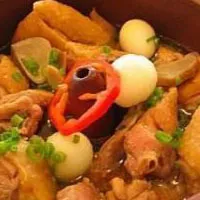 汽鍋雞是云南的名菜之一,早在2000多年前就在滇南民間流傳。建水出產(chǎn)一種別致的土陶蒸鍋,叫“汽鍋”,是專門用來蒸食物的。汽鍋雞的做法是鈄仔雞洗凈后在砍成小塊,和姜、鹽、蔥、草果一道放入汽鍋內(nèi)蓋好,汽鍋置于一放滿水的湯鍋之上,用砂布將隙縫堵上,以免漏汽,再放到火上煮。湯鍋的水開后,蒸汽就通過汽鍋中間的汽嘴將雞逐漸蒸熟(一般需3 ~4小時)。由于湯汁是蒸汽凝成,雞肉的鮮味在蒸的過程中喪失較少,所以基本上保持了雞的原汁原味。吃起食客的贊譽。如果在汽鍋中分別加入云南出產(chǎn)的珍貴藥材“三七”、“蟲草”、“天麻”、就叫三七汽鍋雞,蟲草汽鍋雞,天麻汽鍋雞。這不僅增加了營養(yǎng)價值,能滋補強身,而且對體弱、頭昏、管力等癥還有一定作用,對冠心病、神經(jīng)衰弱等具有療效。