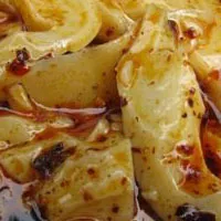 由于漢中人吃膩了涼粉,于是獨(dú)出心裁變個(gè)形式,趁涼粉沒有冷卻之前佐料熱食,便稱為吃“熱涼粉”。吃法比較講究,在同一盆中的涼粉可分為兩種,即塊片和糊狀,可任選其一,或兼而食之。