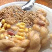 制法:將面粉與精鹽、五香粉拌勻。炒鍋內(nèi)放入牛油,用中火化開,待油溫升至二成熱,先將拌過調(diào)料的面粉放入油內(nèi),迅速攪炒,當(dāng)鍋內(nèi)出現(xiàn)油面塊時(shí),隨時(shí)用手掰碎,邊攪邊掰,至油面塊全部掰碎均勻,將其余拌過調(diào)料的面粉陸續(xù)放入,繼續(xù)攪炒至面熟時(shí),改用小火焙2—3分鐘,成為油面。鍋內(nèi)添入清水,用旺火燒開,徐徐下入油面,慢慢攪動(dòng)。另將面粉用30℃溫水和成稠面糊,陸續(xù)倒入鍋內(nèi),邊倒邊攪,用中火燒開待油茶泛泡時(shí)即成。若加入芝麻和花生米,別有風(fēng)味。