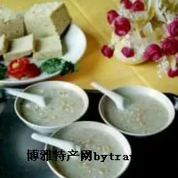 3、水燒開將炒面撒到鍋內(nèi),攪?yán)境上〕磉m度的油茶(每500g面粉約需水2kg),吃時(shí)碗內(nèi)放杏仁,再盛油茶,芝麻撒在上面。