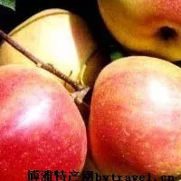 平均單果重223克,果實(shí)近圓錐形,縱徑6.9厘米,橫徑7.6厘米,果形指數(shù)0.9,果實(shí)橫徑7.5厘米以上的達(dá)80%以上;果實(shí)7月卜旬著色,底色綠黃,全面或多半面鮮紅色,果面光潔、有光澤:肉質(zhì)細(xì)、松脆、汁多,風(fēng)味酸甜適度、有香氣,可溶性固形物12.5%,總酸0.2396,果實(shí)較耐貯運(yùn),