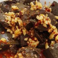 辣子蒜羊血“麻、辣、咸、香、光、嫩,入口光滑,調(diào)料多樣,辣香撲鼻,助人食欲,有利消化。端上來(lái)時(shí),但見(jiàn)滿(mǎn)碗皆紅,椒辣與蒜辣撲鼻,不甚食辣的人是看也不敢看的,而老西安則大口大口地享受,只覺(jué)得香美無(wú)比。此食品可熱吃,也可冷吃,冷吃更別有一番滋味,似涼粉而實(shí)系葷菜,是血品卻清素平常。三二好友相遇,一盤(pán)辣子蒜羊血,一瓶西鳳酒,便可暢談一宿。那情景,活脫脫鄉(xiāng)野間隱逸先民的一次聚會(huì),又仿佛酒醉中八仙的某種豪舉。