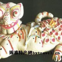 面塑:以糯米、麥粉添彩捏塑成人物、動(dòng)物、花卉或各式圖形等藝術(shù)品。另有以彩面調(diào)合點(diǎn)綴在食品上,區(qū)別用途,各呈異彩。小兒滿月親友送囫饃,形如壁筒,取意圓滿吉祥。饃上塑彩色花朵,吉祥圖飾,補(bǔ)以梳蓖刀剪壓刻素紋。 這種藝術(shù)化了的食品,使人欲食不忍,贊嘆不絕。向老人祝壽的花饃,則以桃形領(lǐng)銜,此俗源自《神農(nóng)經(jīng)》,該書有“玉桃眼之長生不死”之說。神話傳說中之西王母,瑤池種植蟠桃3000年一開花,3000年一結(jié)食,食一枚可增壽600歲。3月3日王母娘娘誕辰時(shí),開設(shè)蟠桃會(huì),各路神仙沓來祝賀。此即民間以壽桃祝賀老人高壽之由來。 蜜桃滋甘,不能四時(shí)皆備,人們便代之以面塑的心愿,亦是耐人觀賞的藝術(shù)品。元宵節(jié)面塑多十二生肖,端陽節(jié)常為蛇蝎五毒形。灶君爺、神主堂的貢品和新娘出嫁的花饃,以福壽吉祥圖樣為主,各有其特殊的含意。