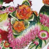 俗稱“花花饃”,屬面塑藝術(shù)。種類有婚禮、喪禮、壽禮、節(jié)日花饃。他以普通面粉為蕊,特等面粉為皮,借用針、梳、刀、剪等工具,靠捏、剪、修、綴而成。相傳它是古代圖騰金石禮器演化的產(chǎn)物,也是勞動(dòng)?jì)D女智慧的結(jié)晶。我市民間普遍盛行,尤以合陽(yáng)、華縣面花為佳。兩縣“面花”都曾先后到北京、西安等地展出,引起極大轟動(dòng)。1990年3月和陽(yáng)縣獨(dú)店鄉(xiāng)面花藝人趙秀琴表演制作的中秋禮饃“蛤蟆吐娃”榮獲陜西省面花大賽一等獎(jiǎng),“獅子糕”等5見(jiàn)面花作品參加全國(guó)首屆工藝美術(shù)佳品展銷和赴日本“中國(guó)藝術(shù)周”展出( 渭南)