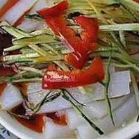 子長涼粉,為子長縣傳統(tǒng)風(fēng)味小吃,馳名陜北。子長涼粉有綠豆涼粉、蕎面涼粉、洋芋涼粉之別,以綠豆涼粉最受人青睞。綠豆涼粉采用優(yōu)質(zhì)綠豆,制成綠豆粉面,再加水兌礬至糊狀,鍋內(nèi)攪至稠,熟后盛于器皿冷卻。再浸入涼水,食用時切成條、塊,拌以酸辣佐料。成品涼粉綠瑩瑩顫悠悠,燦如美玉、細(xì)如賦脂,看似柔嫩,實則筋韌,富于彈性,可切成細(xì)絲掛鉤叫賣,為充饑飽腹的美食,具有清涼消暑的功能。蕎面涼粉采用蕎面粉熟制而成,其顏色灰白,味美可口,切成條、塊再加調(diào)料即可 洋芋涼粉采用洋芋淀粉加明礬熟制而成,顏色明凈黃亮,滑膩爽口,亦切成條、塊,加調(diào)料食用。( 延安)