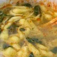 用涼水將面和成面漿,在鍋里燒些開水,等水沸后將面糊慢慢倒入鍋內(nèi),邊倒邊攪。(也有直接面漿放在鍋里燒開)直到面糊粘度達到要求(冷確后成團)后將其倒入盆或碗內(nèi)冷卻,即成攪團。或趁熱時將面糊從多眼的器具(箅子或漏盆)里漏過,下面用放有涼水的盆接著,這時漏下去的面糊即成了像蝌蚪一樣的面團,這便是我們所說的涼魚了。提前將西紅柿、雞蛋、韭菜、豆芽、豆腐等做成臊子或用做酸湯。將蒜泥用油激一下可以提高食味。將冷卻以后的攪團切成塊,澆上臊子或酸湯,放入佐料即可食用。也可以先在碗里放入臊子、酸湯、佐料,再將熱的攪團一勺一勺放入碗里,即為美味。用漏勺將水盆里的涼魚撈上,放入碗內(nèi)加上臊子、酸湯、佐料,更是別有風味的小吃。
