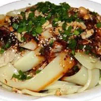 秦鎮(zhèn)米面涼皮是戶縣秦渡鎮(zhèn)特產(chǎn)。用大米面制作,已有200多年的歷史。秦鎮(zhèn)涼皮最早是用小麥粉制作,約在19世紀末演變?yōu)榇竺酌?,清末時該鎮(zhèn)著名的涼皮鋪就有“皮子鋪趙家”等。以大米為主料,泡、磨成米漿蒸制成。食時切細條,加辣子油、醋等調(diào)料。其特點是:酸、辣、筋、軟、爽、涼、香。