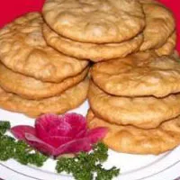 鎮(zhèn)原糖油餅 甘肅 ? 慶陽(yáng) ? 鎮(zhèn)原 鎮(zhèn)原糖油餅 當(dāng)你漫步鎮(zhèn)原街頭,在食品攤上常常能看到長(zhǎng)方形木盤中成摞成行的油餅。這種油餅顏色深紅,皮薄酥脆,吃起來香甜可口。糖油餅兌面很講究,將酵面、生面、熟面各三分之一,兌入適量蜂蜜、紅塘、雞蛋、熟油和堿面,一起和好揉勻,略發(fā)后再反復(fù)揉好,再揪成拳頭大的面塊,揉圓苫好,再一個(gè)個(gè)搟成小面餅,中間用菜刀劃一兩條縫,放入油鍋中炸熟?;鸷蛞埠苤v究,油鍋燒滾即下?lián){成的油面餅,浮起,翻過,再用小火慢炸即成。 贊 (0) 39 151 生成海報(bào) 隴東黃酒 下一篇 0001-01-01 正寧豆腐 上一篇 0001-01-01 相關(guān)推薦