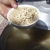 做法是將莜麥或青稞(去外皮)簸凈,清水洗去雜質(zhì),入鍋煮熟(表層開(kāi)口),瀝出涼冷,加入甜醅曲和勻,裝進(jìn)壇中密封,保持恒溫(15℃上下),經(jīng)3~5天發(fā)酵,開(kāi)壇食用,醇香、清涼、甘甜,夏能清心提神,冬則壯身暖胃。